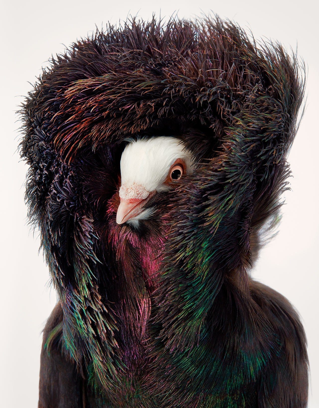 🪶After reading The Economist’s What’s it like to be a bird?, I immediately bought Tim Flach’s book, Birds. Incredible photography. “By giving the animal a human portrait you start to see its personality and character. We have to feel and be touched by these things to care about them.” Below, his picture of a Kite Jacobin pigeon: